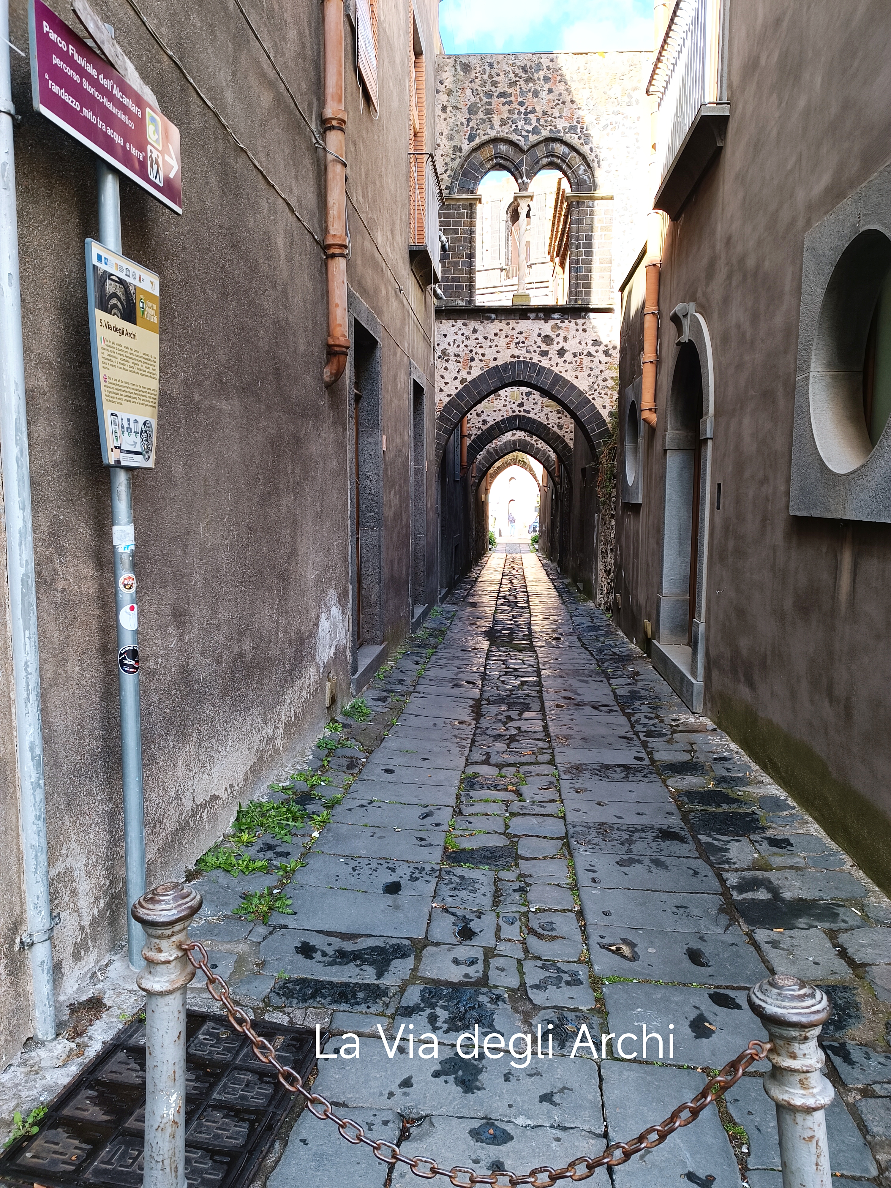 Cio’ che invece lo distingue da Milo è la maggiore ampiezza del suo centro storico ed un aspetto architettonico più variegato, in cui spicca la suggestiva Via degli Archi, un acciottolato in basalto lavico con bifore ed archi a sesto acuto, le chiese, i palazzi medievali e il Palazzo Comunale con il chiostro.